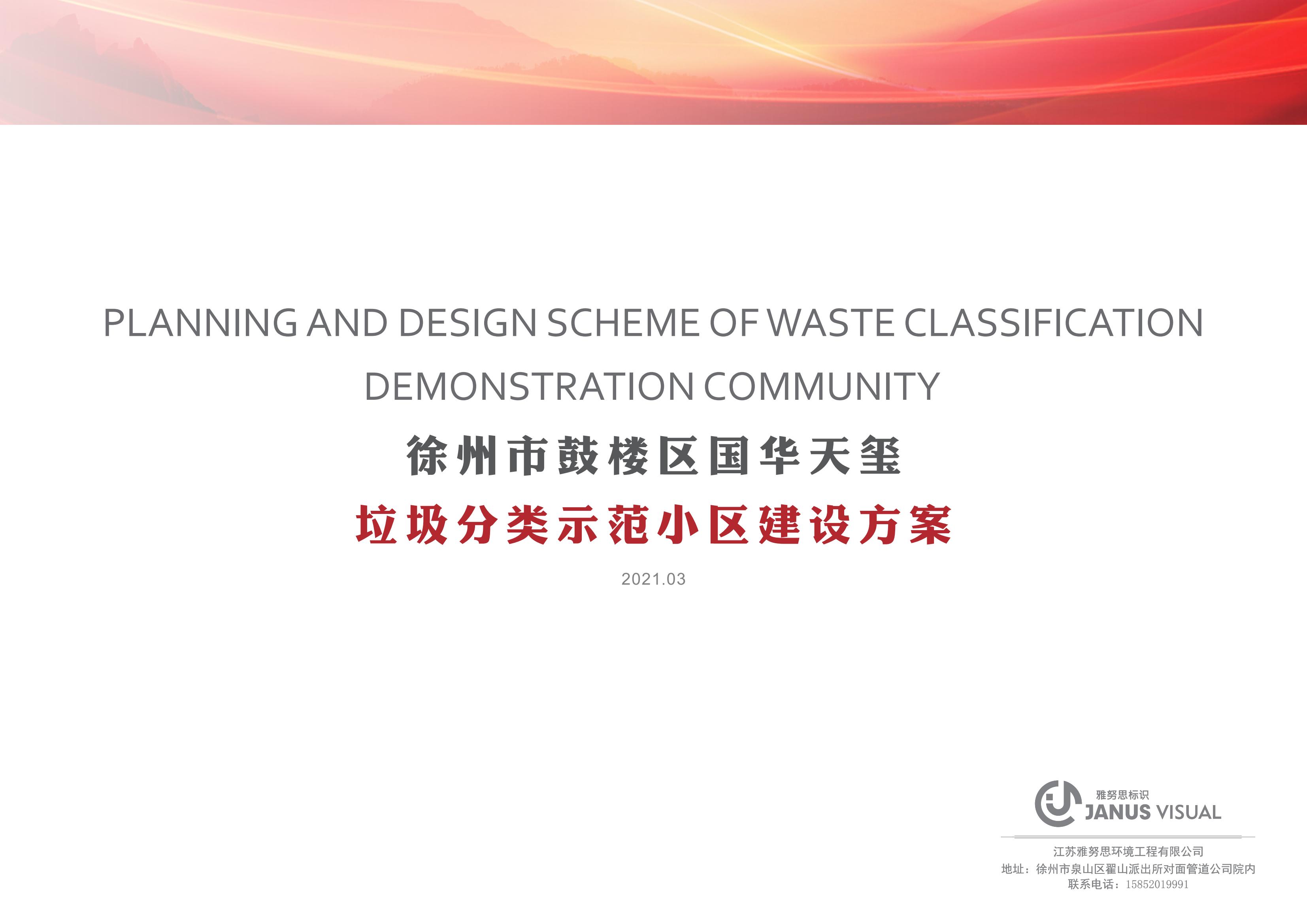 垃圾分类不仅是基本民生问题,也是生态文明建设的题中之义。为了加强徐州市鼓楼区生活垃圾分类管理,提高生活垃圾减量化、资源化、无害化处置水平,结合“徐州市生活垃圾分类管理办法”,雅努思公司为国华天玺小区特设计垃圾分类 整体建设方案。